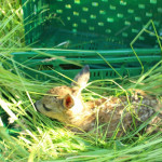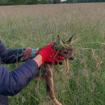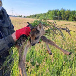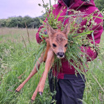 Wir arbeiten mit einer Drohne, die eine Wärmebildkamera hat. So kann man gerade in den frühen Morgenstunden die Kitze als helle Punkte auf dem Display erkennen. Der Pilot, lotst dann die Helfer am Boden mittels Funkgerät zu der Stelle wo das Kitz liegt. Da wird es mit Handschuhen und viel Gras, um keinen fremden Gerüche zu übertragen, in einer Box festgesetzt. Wenn der Bauer das Gras gemäht hat und die Gefahr vorbei ist, lässt der Jäger die Kleine sofort wieder raus, die dann von der Mutter wieder abgeholt werden.