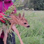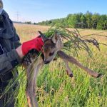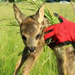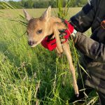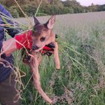 Wir arbeiten mit einer Drohne, die eine Wärmebildkamera hat. So kann man gerade in den frühen Morgenstunden die Kitze als helle Punkte auf dem Display erkennen. Der Pilot, lotst dann die Helfer am Boden mittels Funkgerät zu der Stelle wo das Kitz liegt. Da wird es mit Handschuhen und viel Gras, um keinen fremden Gerüche zu übertragen, in einer Box festgesetzt. Wenn der Bauer das Gras gemäht hat und die Gefahr vorbei ist, lässt der Jäger die Kleine sofort wieder raus, die dann von der Mutter wieder abgeholt werden.